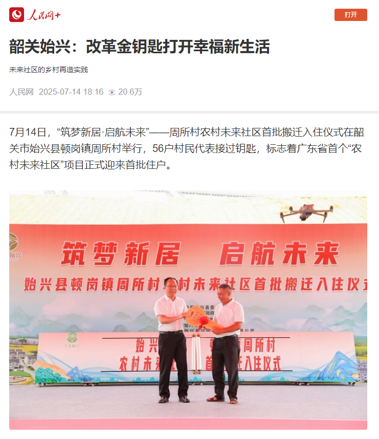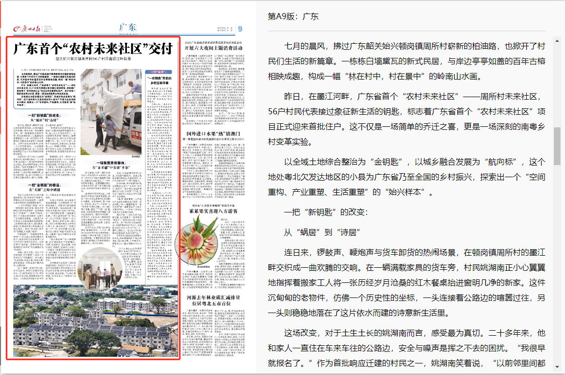 2.南方日報:廣東首個!韶關始興周所村“未來社區”鑰匙交付,56戶村民開啟新生活
